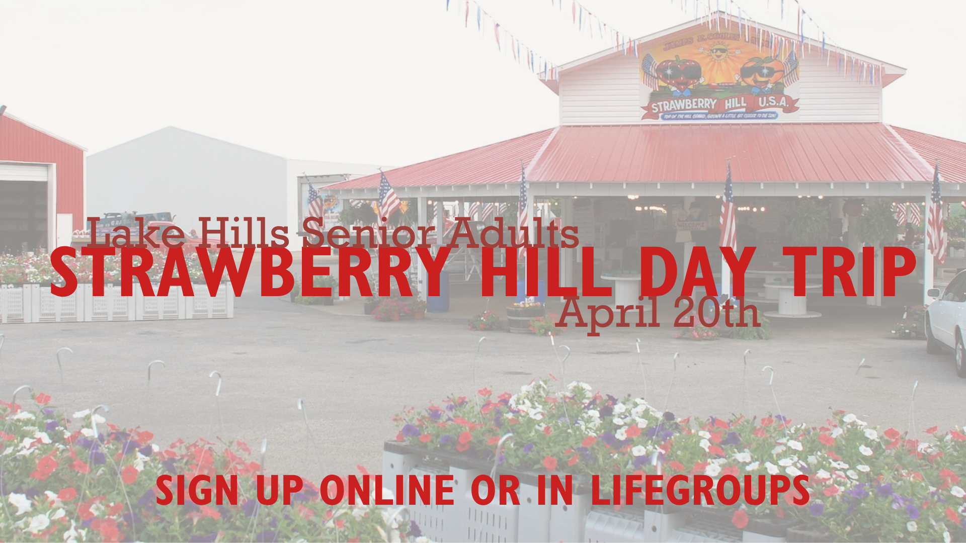 All Lake Hills Senior Adults are invited to join us for a day trip to Strawberry Hill. We will enjoy breakfast/lunch, some produce shopping, and a cone of ice cream! We have 28 spots available for those who need a ride on a church vehicle but if you can drive we have unlimited space. Sign-up today & we’ll be in touch. Some of the sweetest strawberries you’ll ever find! Register NOW